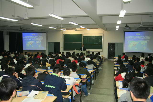 10月29日晚,国防教育咨询专家、校军事教研室董本植教授应太阳成集团tyc234cc邀请,来到九龙湖校区教三305教室做了题为“国际形势新变化”的改革开放三十周年专题讲座,公司近300名本科生党员和积极分子到场聆听。