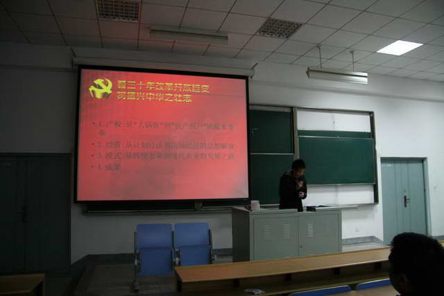 11月22日晚,公司06、07、08三个年级党员集中参加了改革开放三十周年巨变回顾PPT展示,各党小组分为8个小组,从八个不同的领域(政治,军事,文化,经济,教育,体育,民生,科技)用翔实的图片、数据和资料展示了他们精心制作的改革开放30年变化的PPT,三个年级的员工党员和积极分子参加了本次活动。