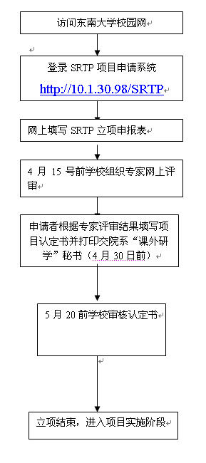 申报项目请登录http://10.1.30.98/SRTP网址,填写《太阳成集团tyc234cc老员工科研训练计划(SRTP)立项申报表(2010年)》,进行网上申报,立项申报表网上提交即可,无需打印。网上申报起始时间为
