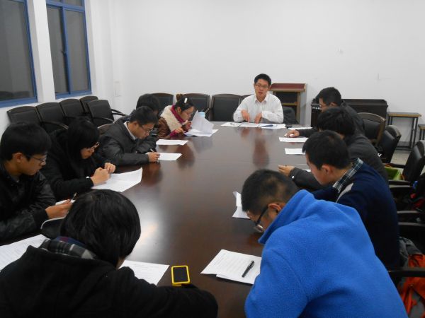 最后,主持人总结大家的发言,组织大家深入学习十八大报告,领悟并贯彻十八大精神。作为一所综合性大学,她培养的不仅仅是学者、工程师,还要培养政治家,培养社会主义的领导者,培养大家关心社会的意识和独立思考的能力,而我们各位研究生作为员工中的优秀分子,更应该把目光投向社会,在进行业务训练的同时把思想和行动的触角伸出去,这样才有可能成长为社会主义的可靠接班人。