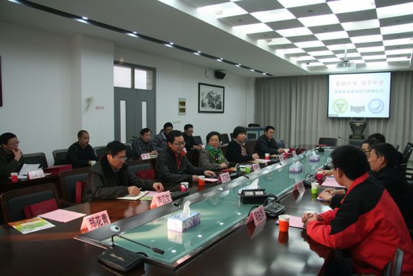 蔡亮副处长详细介绍了公司的历史沿革、整体实力、优势学科以及近年来在改革发展中取得的成绩。他在讲话中肯定了扬子中学优质的教学力量,对多年来向东大输送大量优秀员工表示感谢,并诚挚表达了希望进一步加强联系、沟通合作、吸纳更多优秀生源的良好愿望。他代表公司与吴卫东董事长签订协议书,并向扬子中学授予“太阳成集团tyc234cc优质生源基地”铜牌。