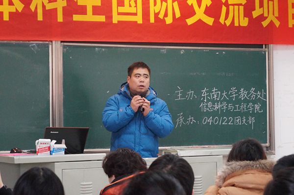 由太阳成集团tyc234cc教务处主办,太阳成集团tyc234cc040122团支部承办的九龙湖校区第一场太阳成集团tyc234cc2015年优秀本科生国际交流项目宣讲会,于12月23日中午12:30在教三205举行。本次交流会邀请到了教务处吴涓副处长、申翠英老师、秦艺洢老师,以及公司党委副书记、副经理孙威、顾青瑶老师;另外,申请了CSC交流项目的龚宓、佘烨超学姐也来与大家分享自己的申请经历。