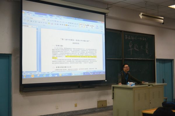 从介绍去年卓越大赛的情况开始,吴晓庆先生向到场的同学们展示了第一届卓越大赛的盛况,随后,为了让同学们更好地了解卓越大赛,他又以去年决赛题目为例,向同学们阐释了卓越大赛涉及什么样的题型,会有怎样的问答方式。其间,以去年的题目为模板,通过向同学们现场的提问,让大家对卓越大赛有一个“试水”的体验。互动的场面,活跃了整场宣讲会。