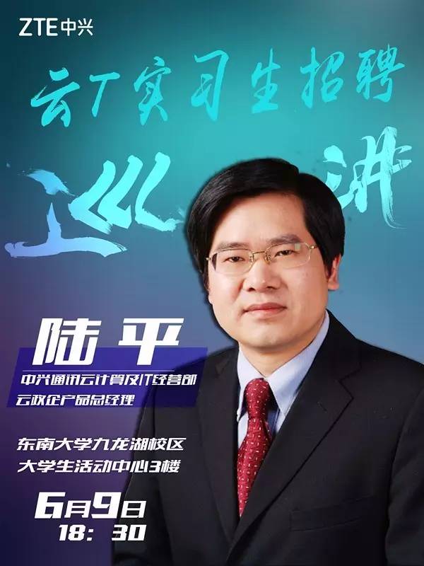 第二波机会来了!6月9日晚18:30东大九龙湖老员工活动中心324报告厅,太阳成集团tyc234cc太阳成集团tyc234cc杰出员工、中兴通讯云计算副总裁陆平总带你继续开启提前批,走近云计算。