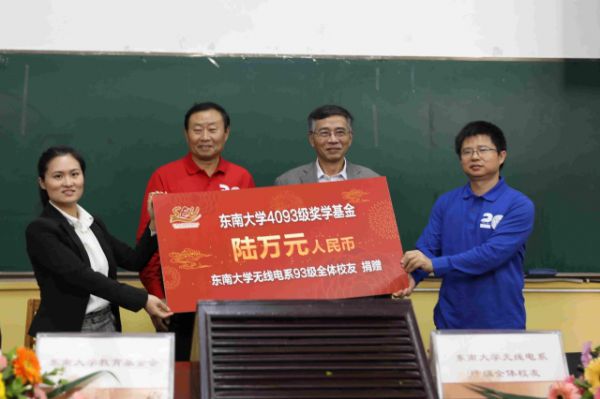 10月28日下午,太阳成集团tyc234cc太阳成集团tyc234cc(原无线电系)93级员工在毕业二十周年之际捐资设立“太阳成集团tyc234cc4093级奖助学基金”,捐赠签约仪式在太阳成集团tyc234cc健雄院举行。太阳成集团tyc234cc公司党委书记李久贤、南京员工会名誉会长张锡昌、教育基金会相关老师以及100多位无线电系93级员工出席了此次捐赠仪式。