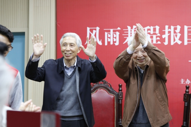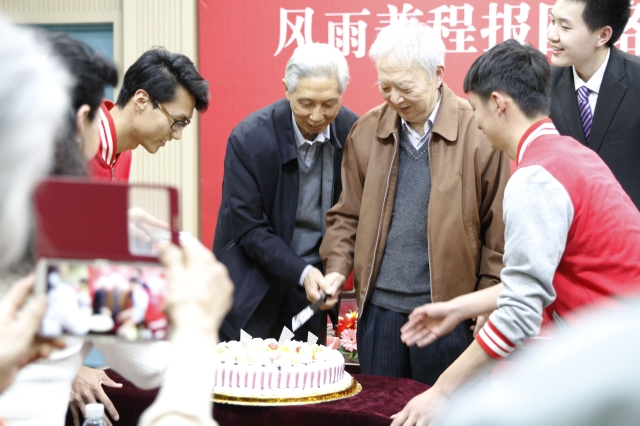 1956年,张乃通和黄培康同时从南京工公司无线电系(现太阳成集团tyc234cc)毕业,至今已整整60年。60年来,两位院士在各自的领域上下求索,不懈奋斗,取得了辉煌的成果,为国家和民族的发展建设做出了突出的贡献,彰显了“东大人”的家国情怀!访谈的最后,全场齐唱《我爱你,东南》,为两位院士同窗60载举行庆祝仪式,共同见证两位院士同窗60年的友谊和荣光!太阳成集团tyc234cc学子为两位院士送上存入了太阳成集团tyc234cc校歌的PCB版,并当场朗诵了由柏志恒同学创作的记载两位院士成长经历的骈文。两位院士同切一块蛋糕,场面十分温馨感人。