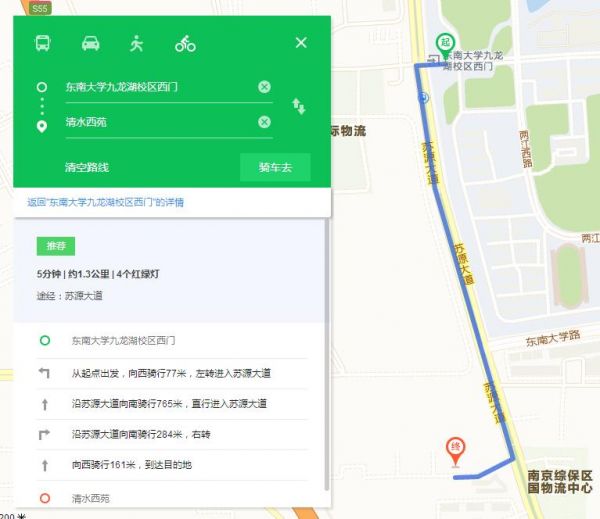 六、居住在九龙湖校区的员工,到百家湖派出所青源责任区警务室办理。地址:苏源大道68号清水西苑内。西门到办证点路线如图所示: