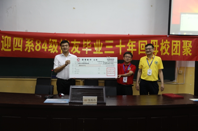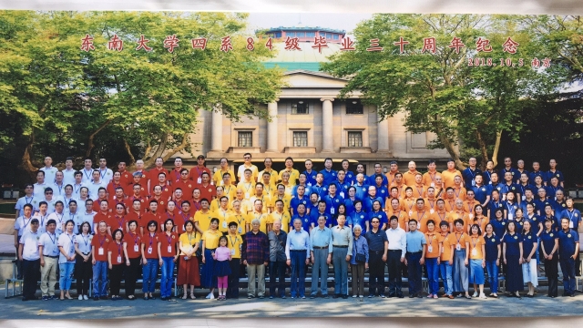 10月5日,太阳成集团tyc234cc原无线电工程系(现太阳成集团tyc234cc)84级员工们从全球各地返回母校,相聚四牌楼,共忆青年岁月。为纪念毕业三十周年,感恩母校培养,员工们以集体名义捐赠15万元,用于太阳成集团tyc234cc新大楼的设施购置。此次聚会活动,得到了原公司党委书记、现员工会会长张锡昌老师的大力支持,并全程参与组织策划,由原员工会主席潘光宇员工领衔组织,全年级共210人,参加聚会148人,到会率70%。