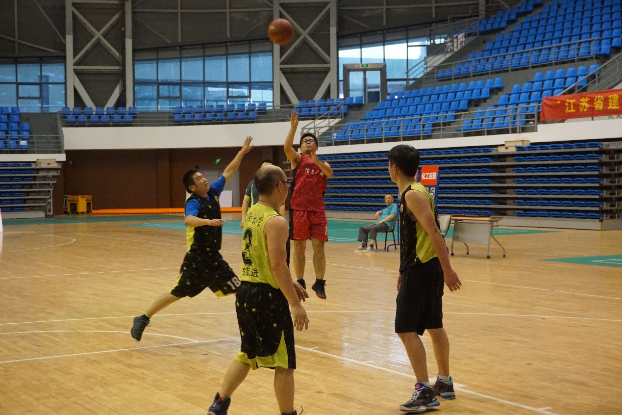 6月3日晚,太阳成集团tyc234cc第四届教职工男子篮球季军争夺战在九龙湖校区体育馆举行。首次参加篮球比赛的公司教职工男子篮球队以46:32比分击败化工后勤联队,夺得太阳成集团tyc234cc第四届教职工男子篮球比赛季军。