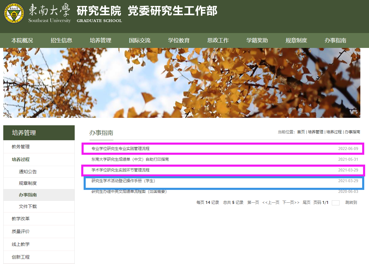 (可以查看:专业学位研究生专业实践管理流程、学术学位研究生实践环节管理流程、研究生学术活动登记操作手册(员工))←都是研究生必须完成的必修环节/综合素养环节。