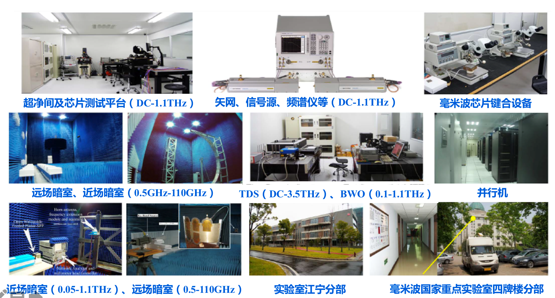 4)目前学科逐步建成了多个处于国际前列、国内领先的支撑平台,包括:(1)到1.1THz的网络参数、频谱参数测试平台,(2)到1.1THz的芯片测试平台,(3)到1.1THz的天线测试平台,(4)到3.5THz的准光测试平台,(5)到110GHz的EMC测试平台等。除支撑本学科的创新研究外,还为国内外很多大学和研究所开展微波毫米波与太赫兹研究提供了测试支持,为促进我国毫米波与太赫兹技术的发展做出了实质性贡献,起到了国家重点学科和国家重点实验室对本学科领域的引领和支撑作用。